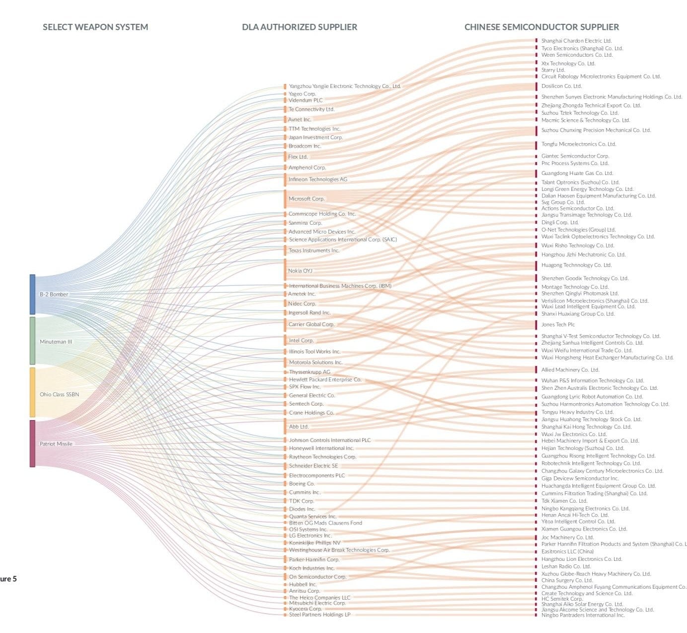 This well-circulated diagram represents one of the paradoxical outcomes of the trust spiral. Solving for “control” leads to a loss of control. Here with selected weapon systems on the left, “DLA Authorized Suppliers” in the middle, and a long tail of Chinese semiconductor suppliers on the right. In Govini’s analysis, systems like the B-2, Minuteman III, Ohio class SSBN, and Patriot show purchasing paths where an authorized channel still maps to Chinese semiconductor firms upstream. The key detail is what the Prime can prove at award time: it can point to an approved supplier record and a compliant ship packet, but it often cannot point to the sub-tier fabrication site that built the die, masked the wafer, or packaged the part. The trust artifact that exists in the Prime’s file is a name in the middle column, and the actual production chain sits one step beyond the Prime’s line of sight.